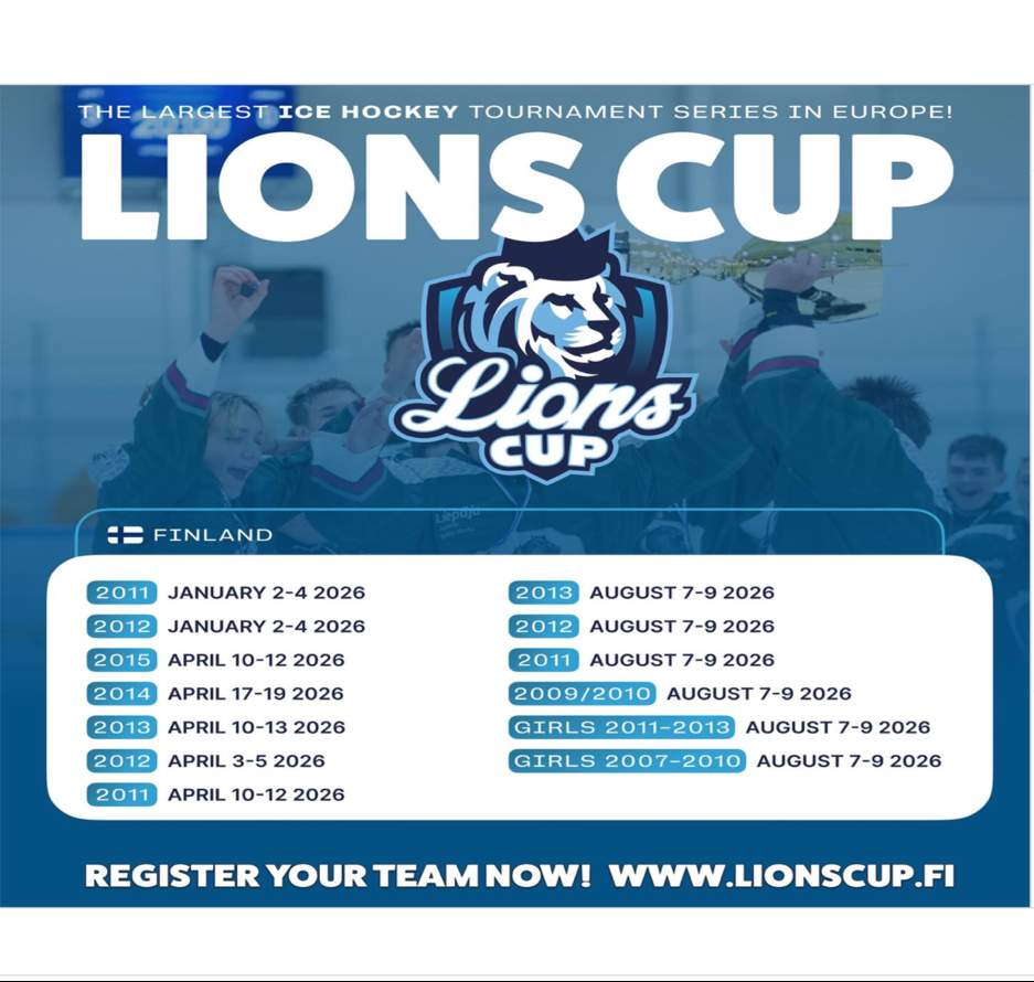 Sedan 2003 har Finland Lions Cup tagit emot hundratals lag från Europa & Nordamerika i internationella evenemang. Turnering för alla åldersgrupper & färdighetsnivåer. Grundspel+ slutspel, min. 5 matcher/lag.