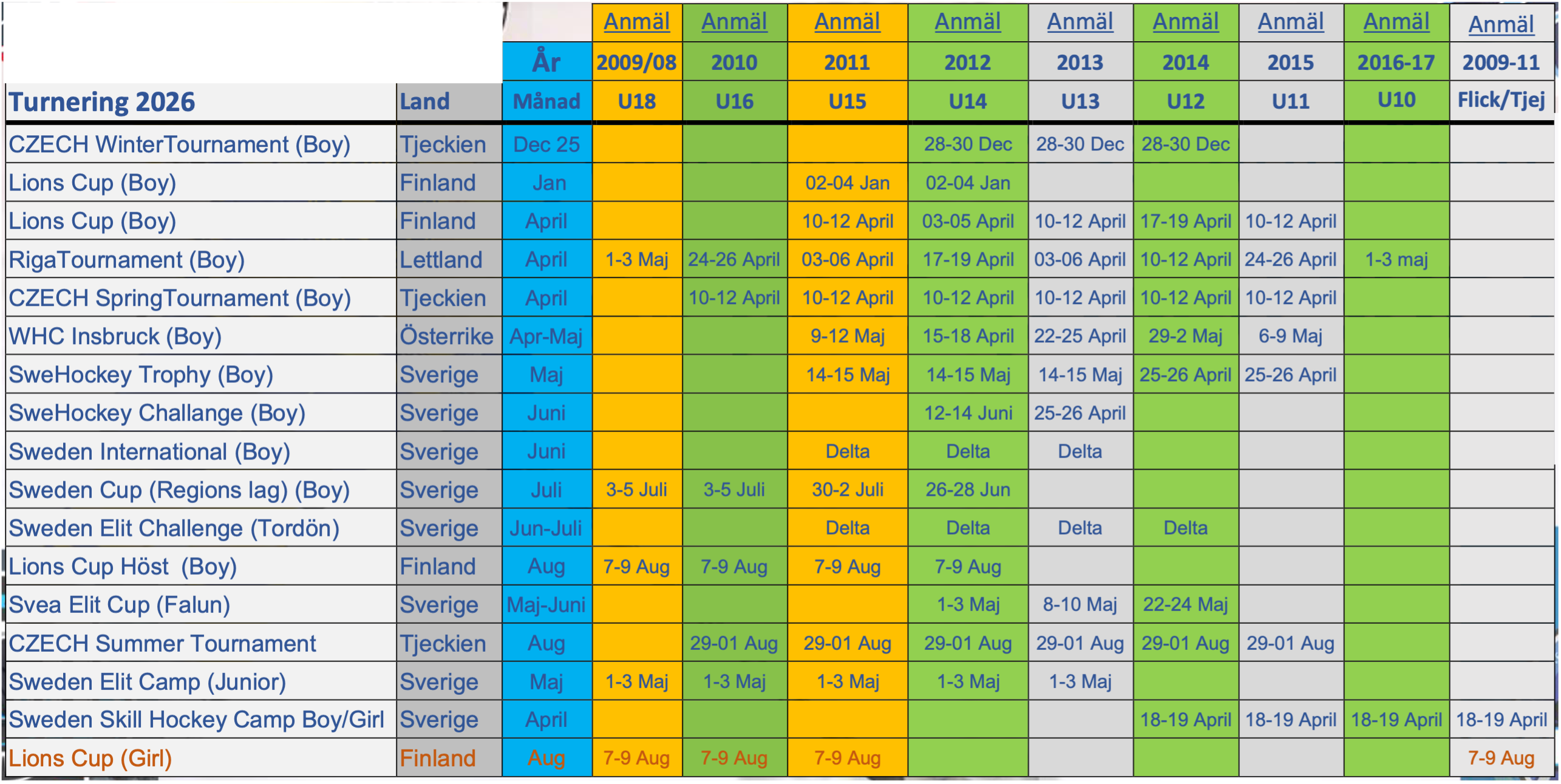 Sweden Hockey Årsplanering finner ni här! Där finns ett urval av Cuper som vi deltagit tidigare, När ni gör lagledare anmälan kan ni pricka i vilka Cuper som är mest intressanta. Ni kan också meddela Oss senare, via mail el mobil!
