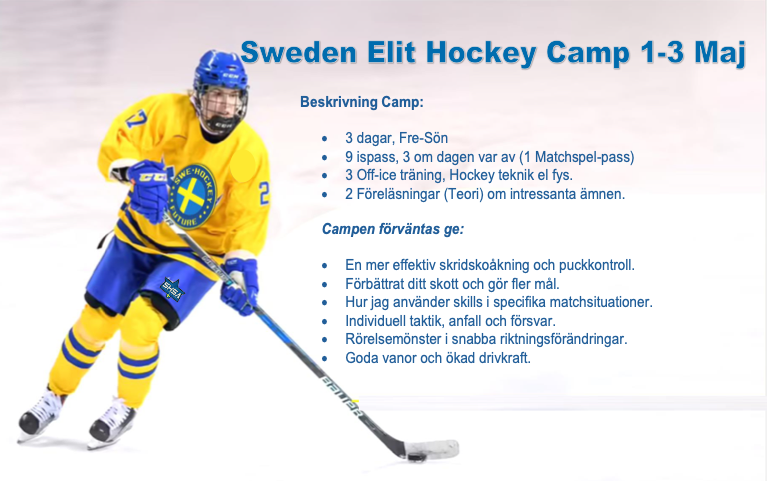 Sweden Elit Hockey Camp är för dig som vill få kunskap hur du kan bli den bästa versionen av dig själv Vi hjälper att analyserar dina rörelse mönster samt att du får träningsprogram hur du kan bli rörligare Sweden Elit Hockey Camp är för dig som vill kombinera högsta nivå av träning med glädje och lärande med fokus på hockeyutveckling. Den perfekta kombinationen av intensiv träning och matchspel.